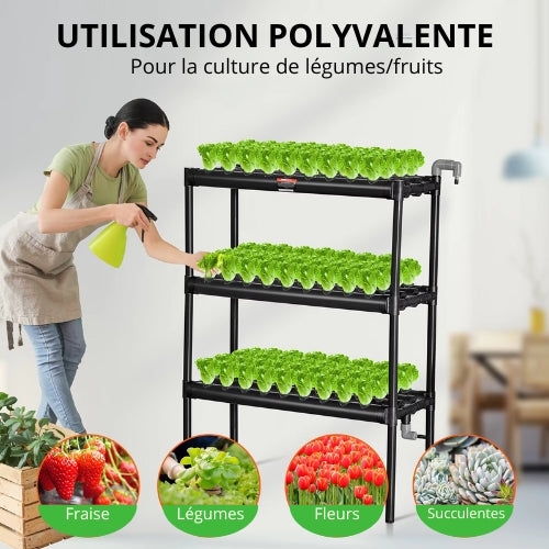 Système Hydroponique 108 Sites - 3 Couches en PVC Gris avec Minuterie et Accessoires