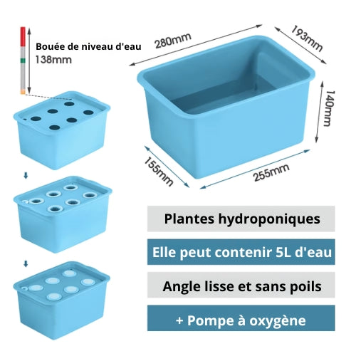 HydroBox 6 – Système Hydroponique avec Flotteur, Réservoir 5L