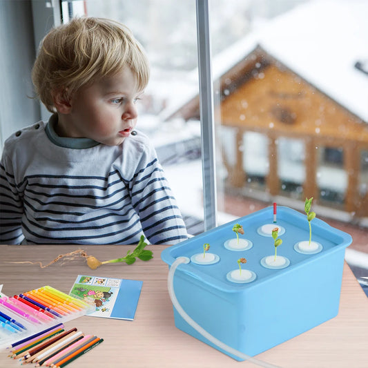 HydroBox 6 – Système Hydroponique Bleu à 6 Trous avec Pompe à Air, Idéal pour la Culture Intérieure